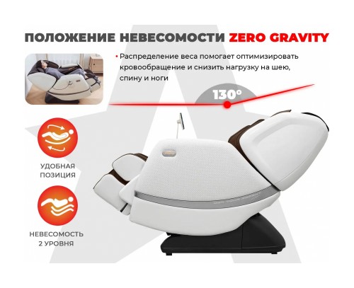 Функция Zero-G позволяет массажному креслу принимать положение в котором создается эффект «нулевой гравитации». В этом положении тело максимально расслаблено и эффект от массажа увеличивается.